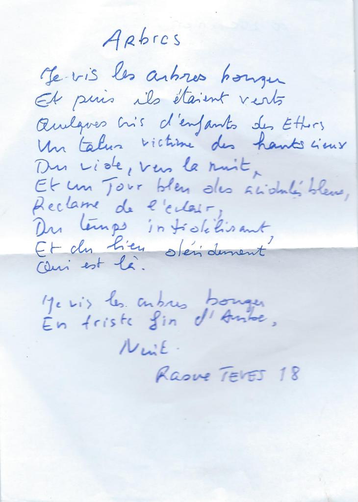 nouvelle version du poeme arbre Partager : Cliquer pour partager sur X(ouvre dans une nouvelle fenêtre) X Cliquez pour partager sur Facebook(ouvre dans une nouvelle fenêtre) Facebook J’aime chargement…